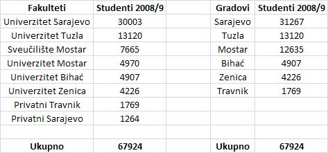 Primjerice Sveučilište u Mostaru (dekani i rekto) u svakoj prilici govore da ima oko 15000 studenata. Eto sad sam vidio da i Univerzitet u Sarajevu frizira podatke...