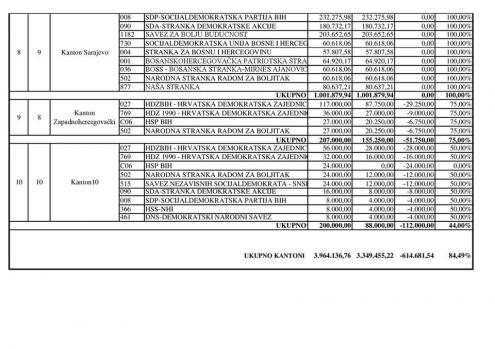 To znači da na godišnjoj razini u HNŽ-u dajemo preko 1 mln KM samo političkim strankama. A što dobivamo zauzvrat? Dakle, novaca za porodiljne naknade IMA, a kad krenemo tek razgovarati o reprezentativnim troškovima, troškovima administrativnog aparata, IMA i sredstava (koja su zakonom definirana, ali Vlada zakon ne poštuje) i za postupno uvođenje besplatnih udžbenika djeci iz socijalno ugroženih obitelji.